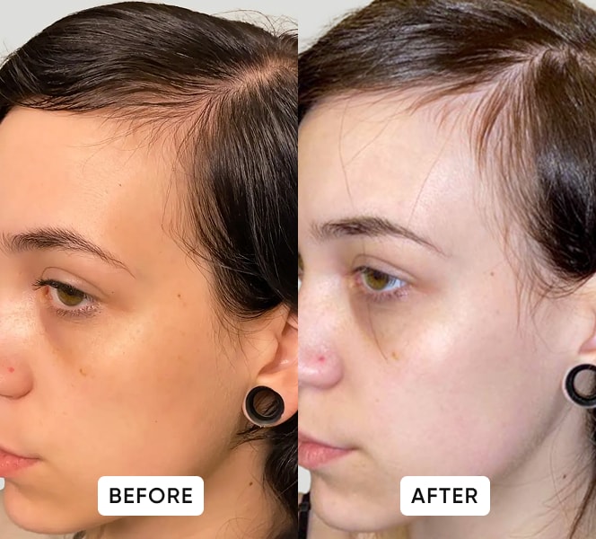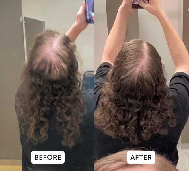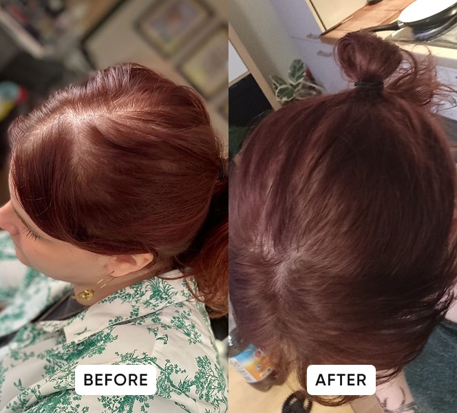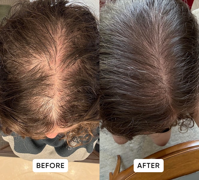 “I didn’t expect fast results, but after 12 weeks my hair sheds less and my scalp looks more covered.”