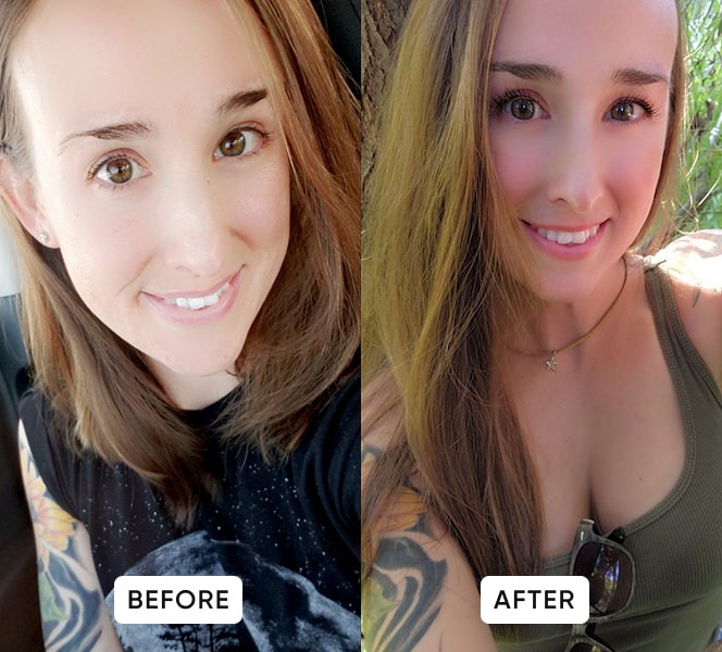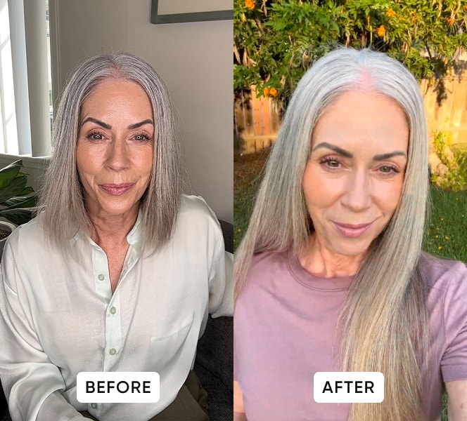 “I am 62 years old and my hair has stopped growing and now in 6 months my friends are asking if I got extensions! My hair grew 6 inches at least and is thicker and shinier than ever before.”